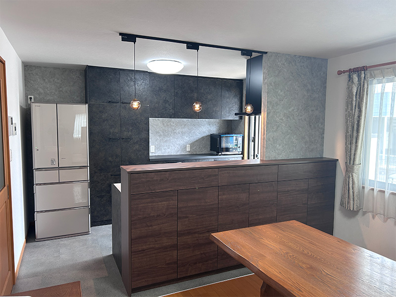 シックなカラーでガラッと雰囲気を変えたキッチン